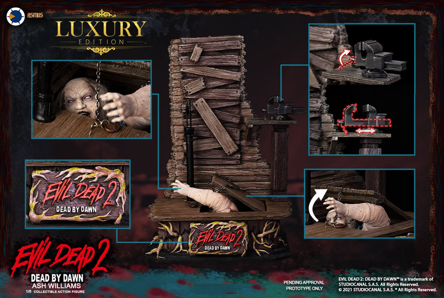 La figura de acción de Ash Williams (Edición de lujo) a sexta escala presenta una imagen auténtica y detallada completamente realista de la película EVIL DEAD II dirigida por Sam Raimi en 1987.