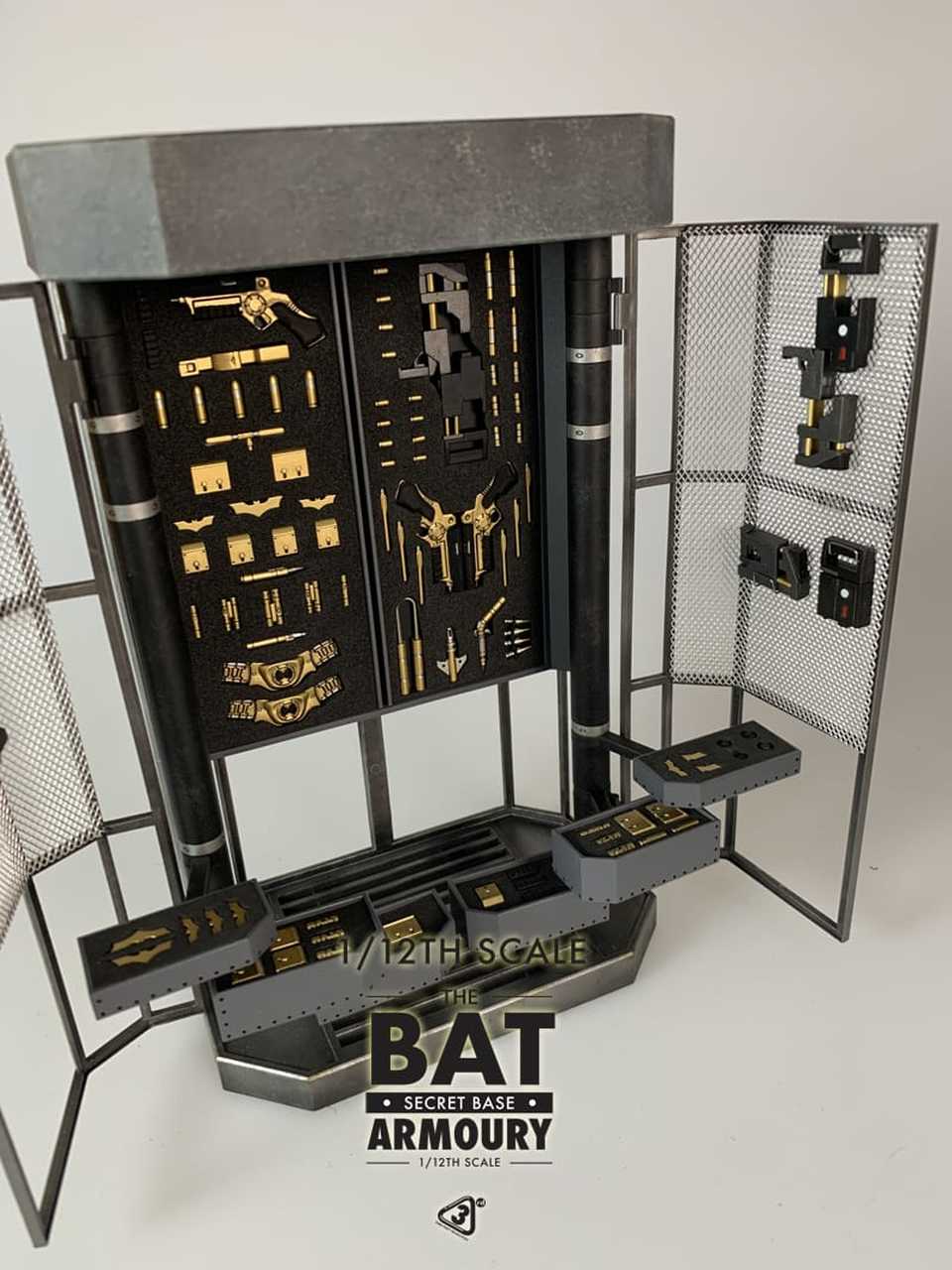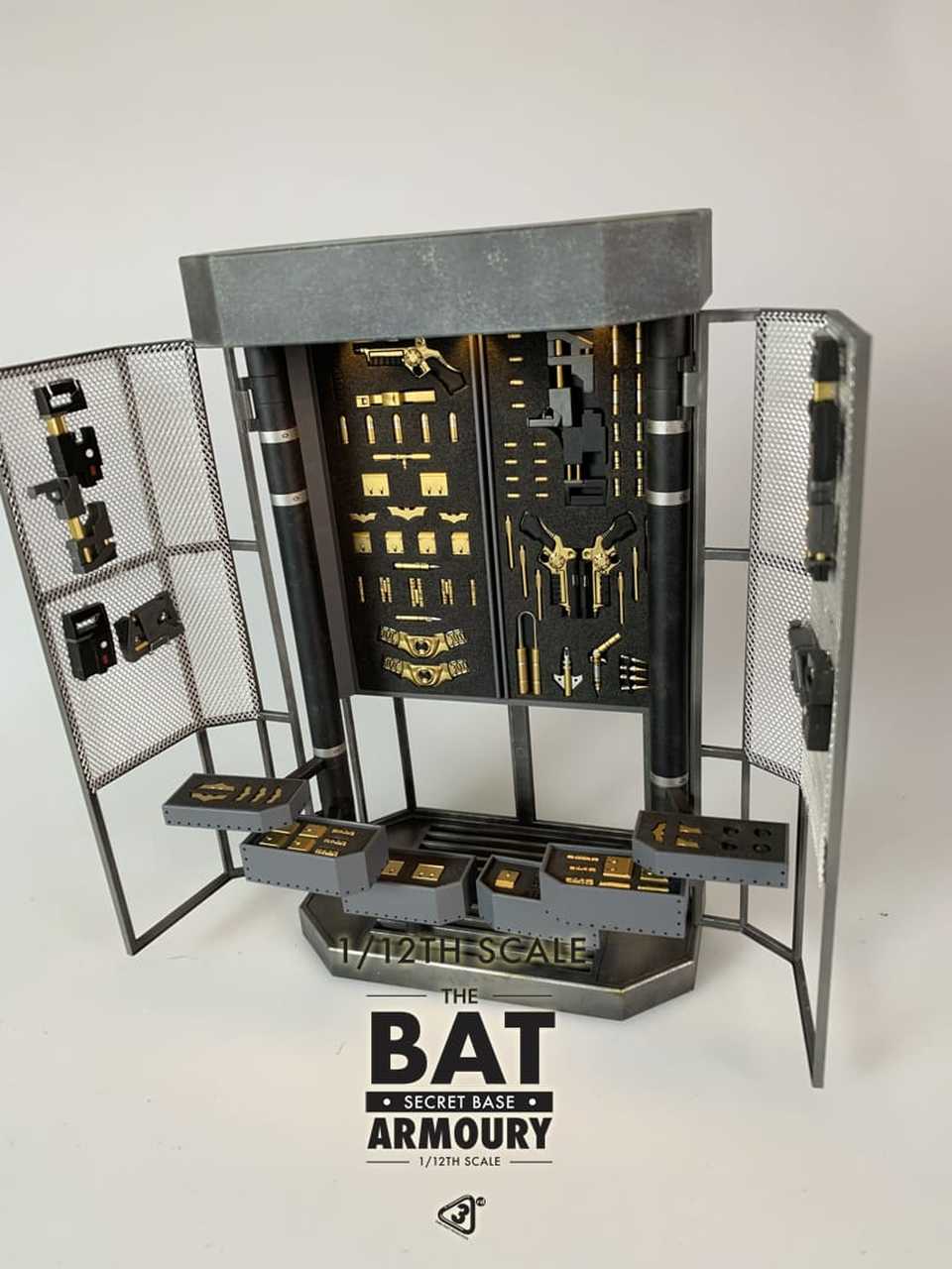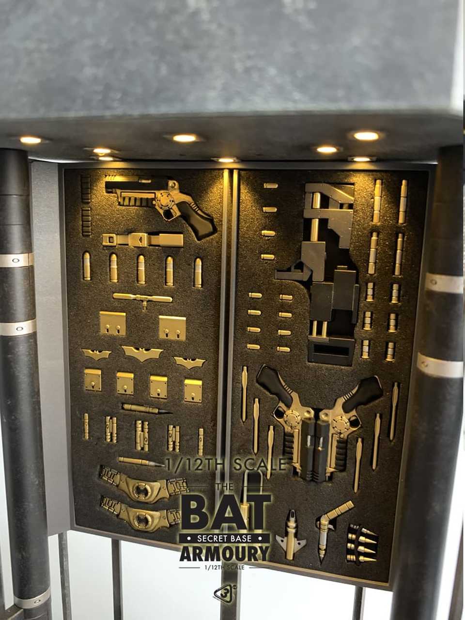 Incluye todos las armas y accesorios que se muestran en las fotos y se pueden quitar del gabinete individualmente.
