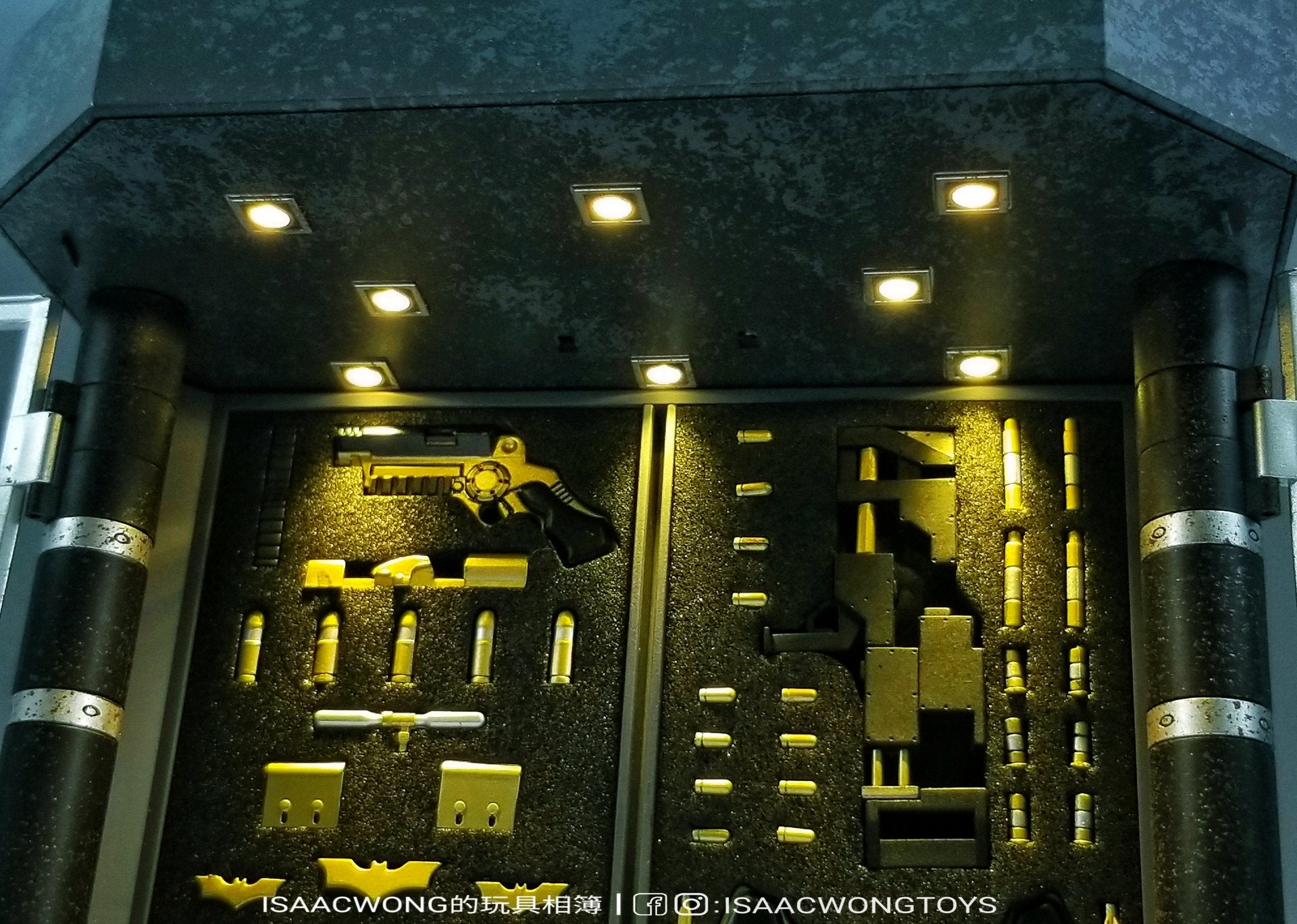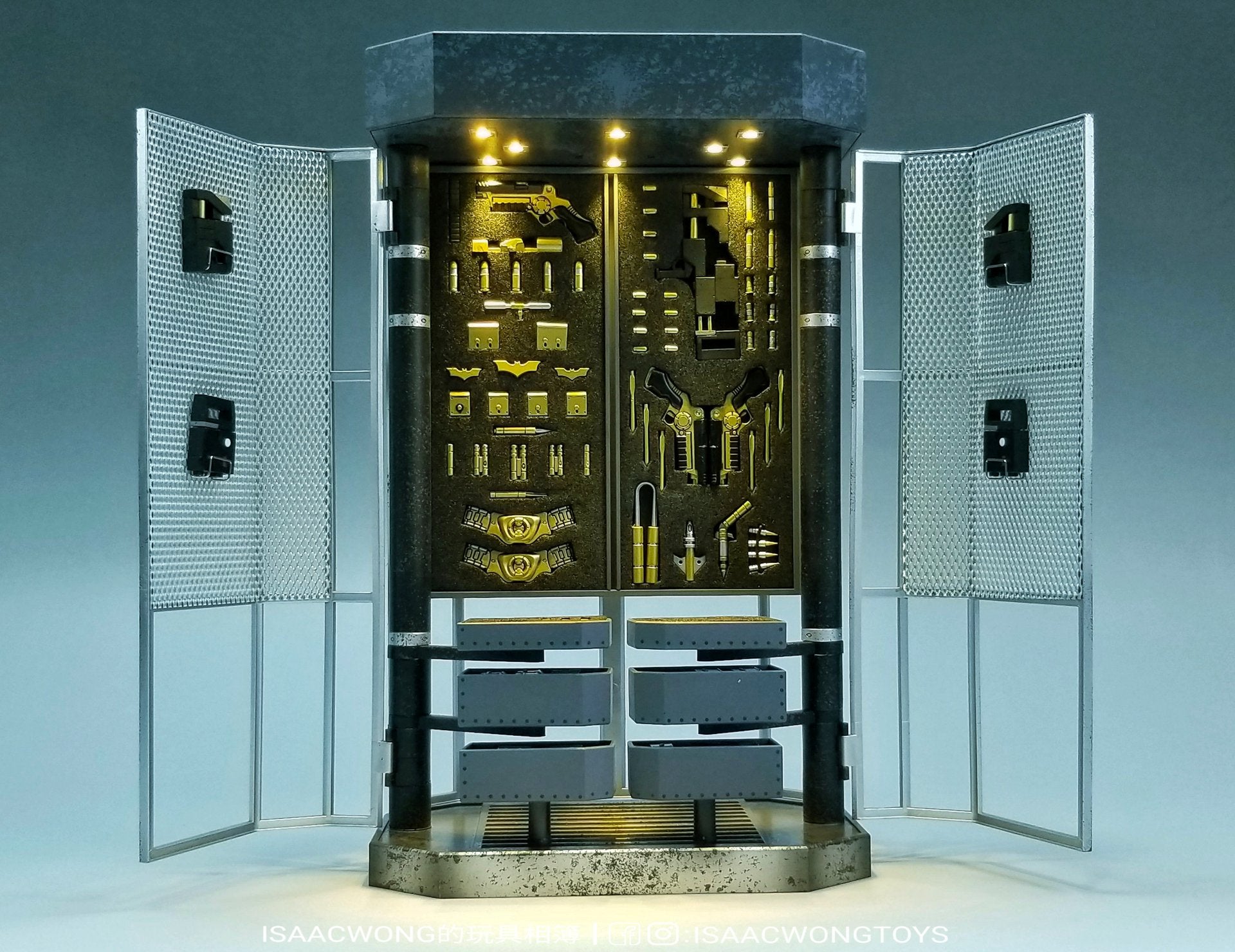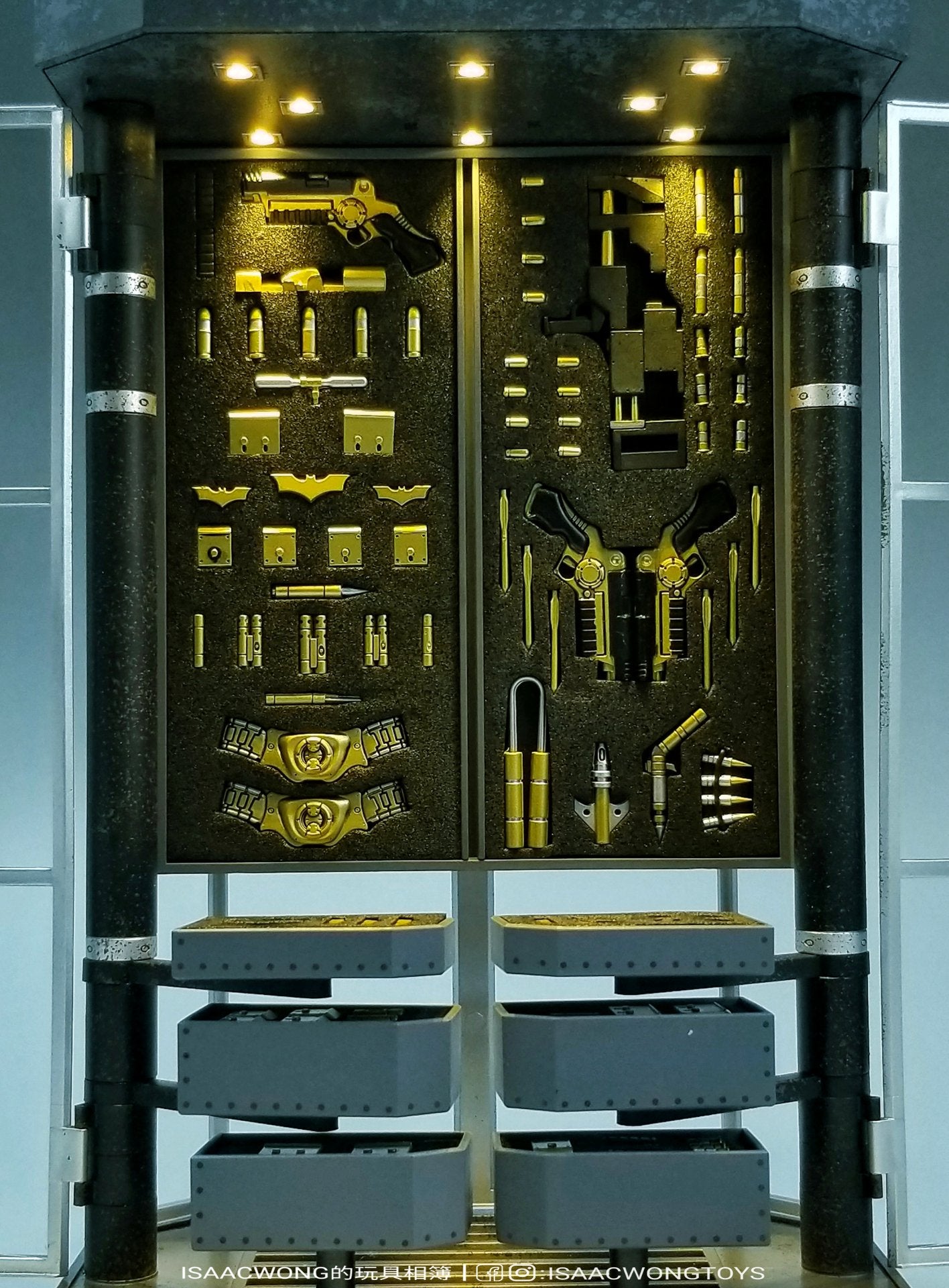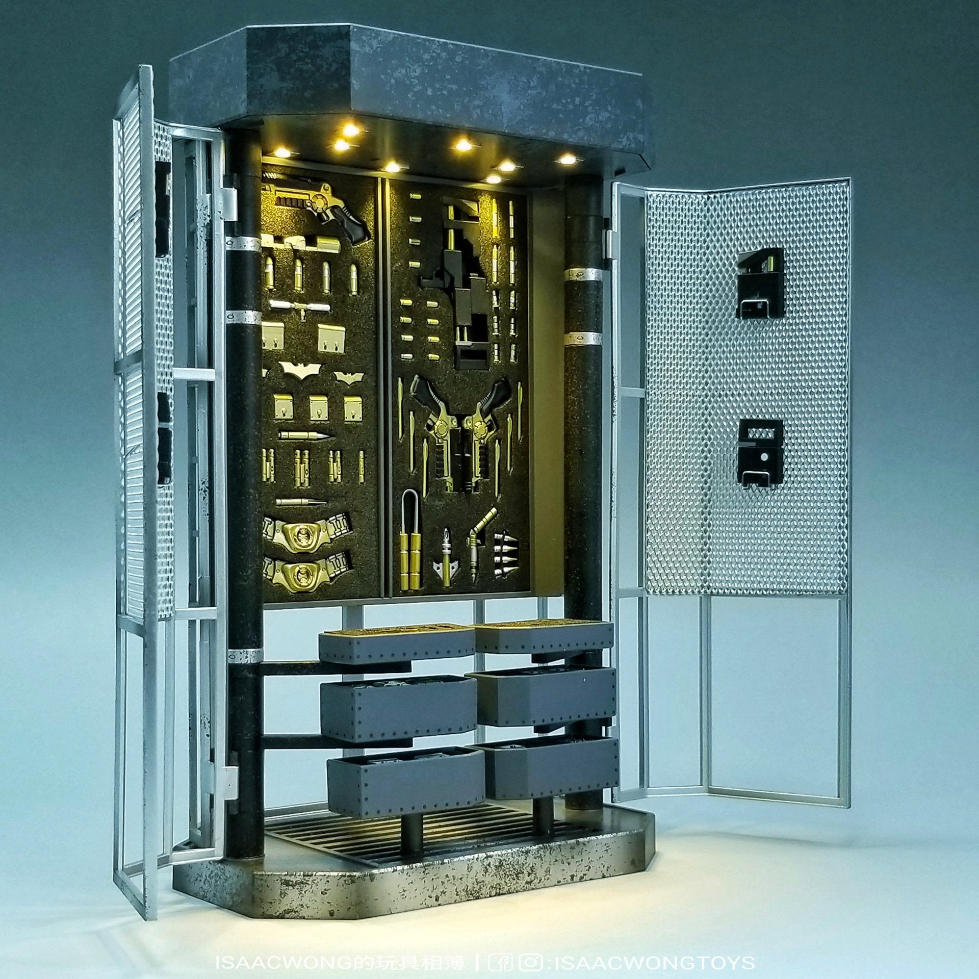 Incluye todos las armas y accesorios que se muestran en las fotos y se pueden quitar del gabinete individualmente.