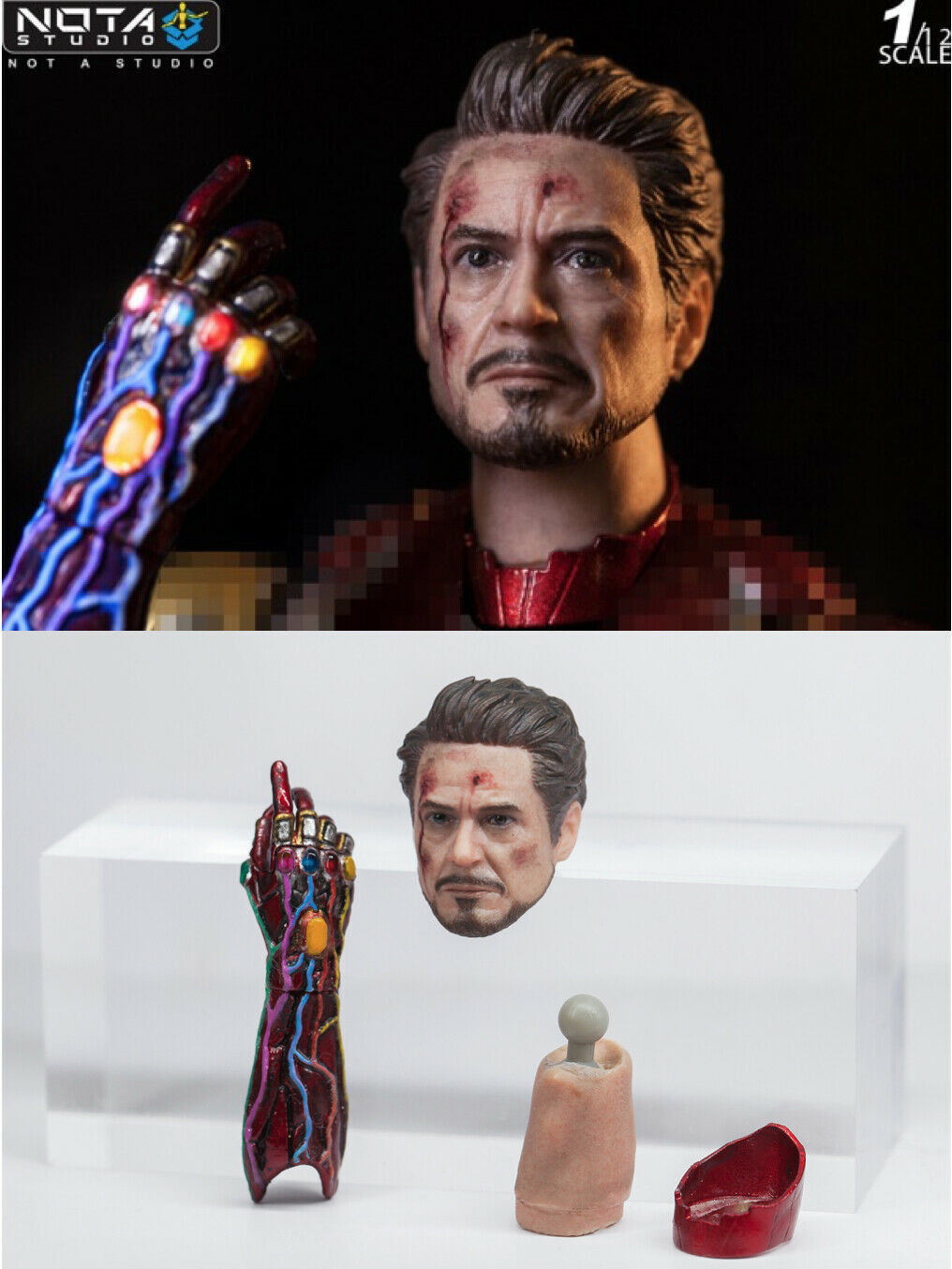 Pedido Cabeza Tony con daño de batalla y Guantelete LED marca Nota escala 1/12