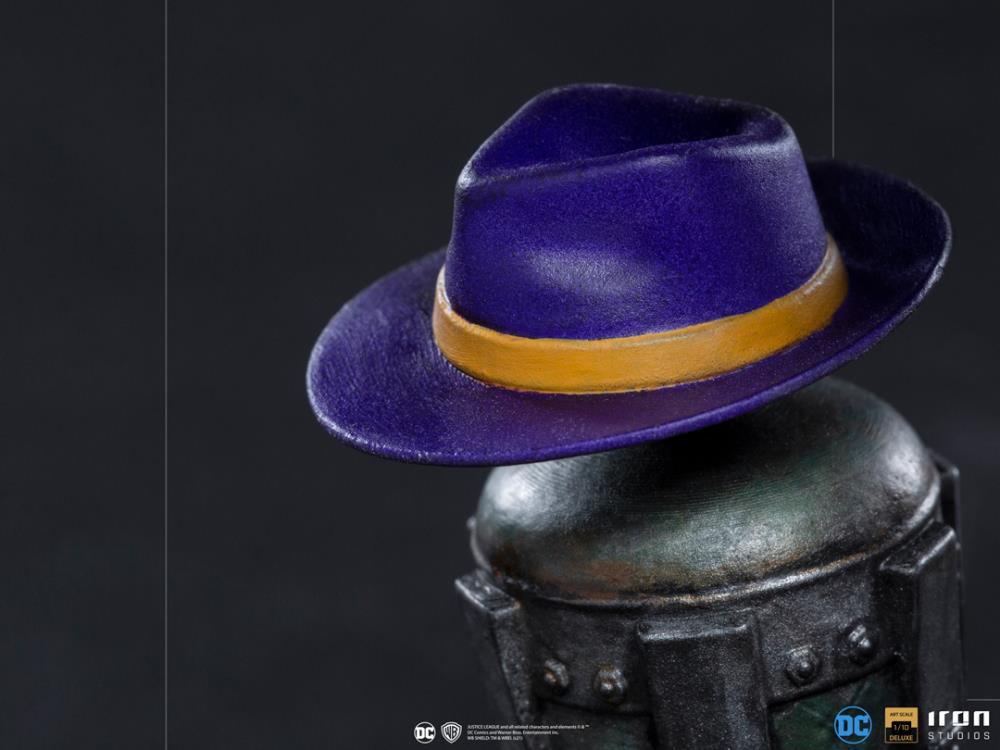 Esta versión de lujo presenta 3 esculturas de cabeza intercambiables, un accesorio fedora y un efecto de gas Joker translúcido adicional.