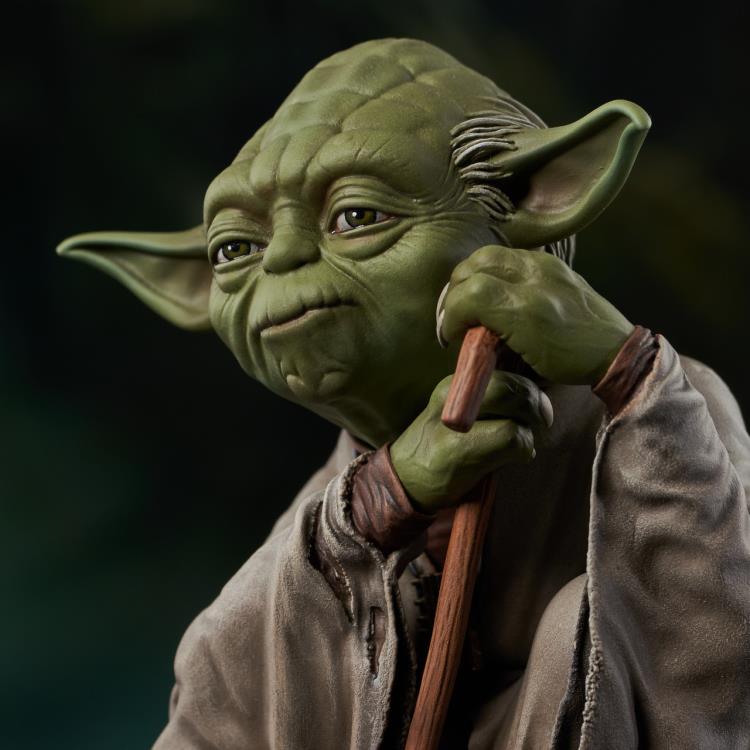 Cuando cumplas 900 años, ¡te verás tan bien que no lo verás! Yoda, el marchito maestro Jedi que entrenó a Luke Skywalker hasta su muerte, es ahora la última estatua a escala 1/6 de la línea Milestones. Esta escultura, que mide más de 5 pulgadas de alto y está apoyada contra el tocón de un árbol podrido en Dagobah, está a escala de otras estatuas de Milestones y está limitada a solo 1000 piezas. La estatua viene empaquetada con un certificado de autenticidad numerado en una caja a todo color.