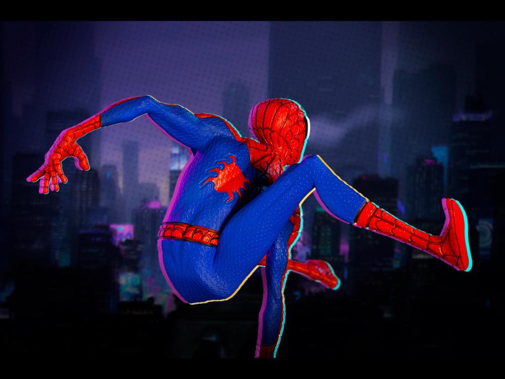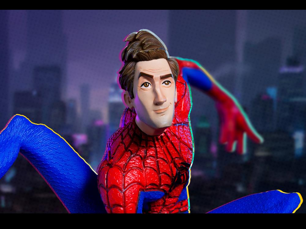 Conecta la estatua con otros personajes de la serie Spider-Man: Into the Spider-Verse
