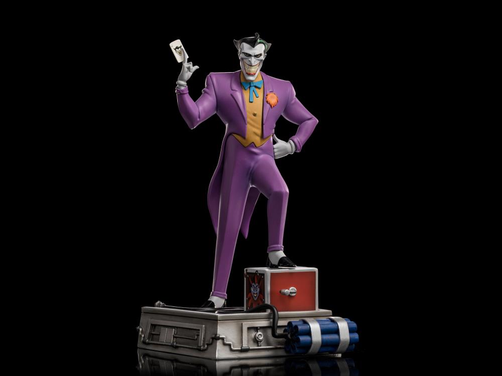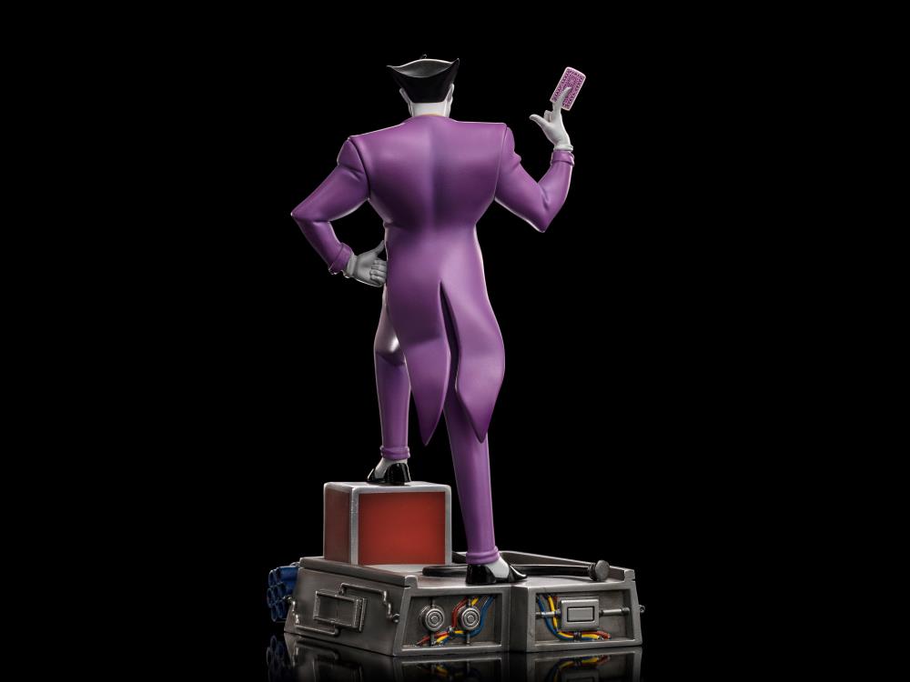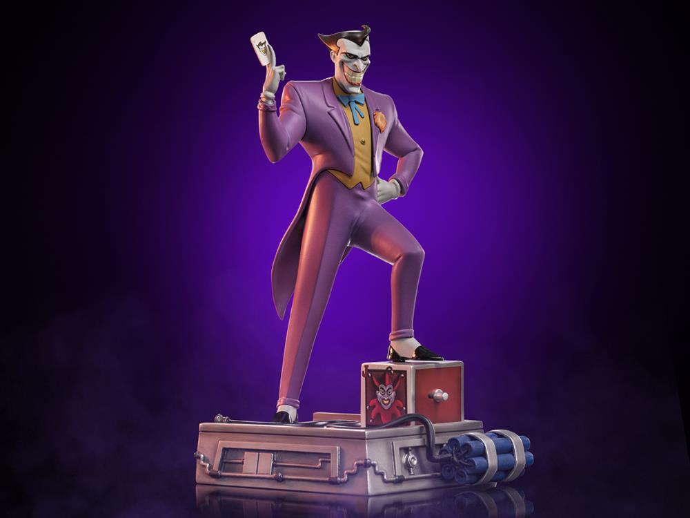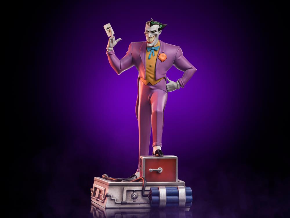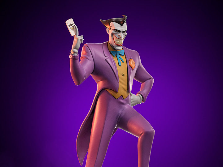 ¡De Batman: The Animated Series viene una nueva estatua de The Joker a escala artística 1/10! El Príncipe Payaso del crimen se presenta con gran detalle vistiendo su icónico traje morado y mostrando su tarjeta de visita.