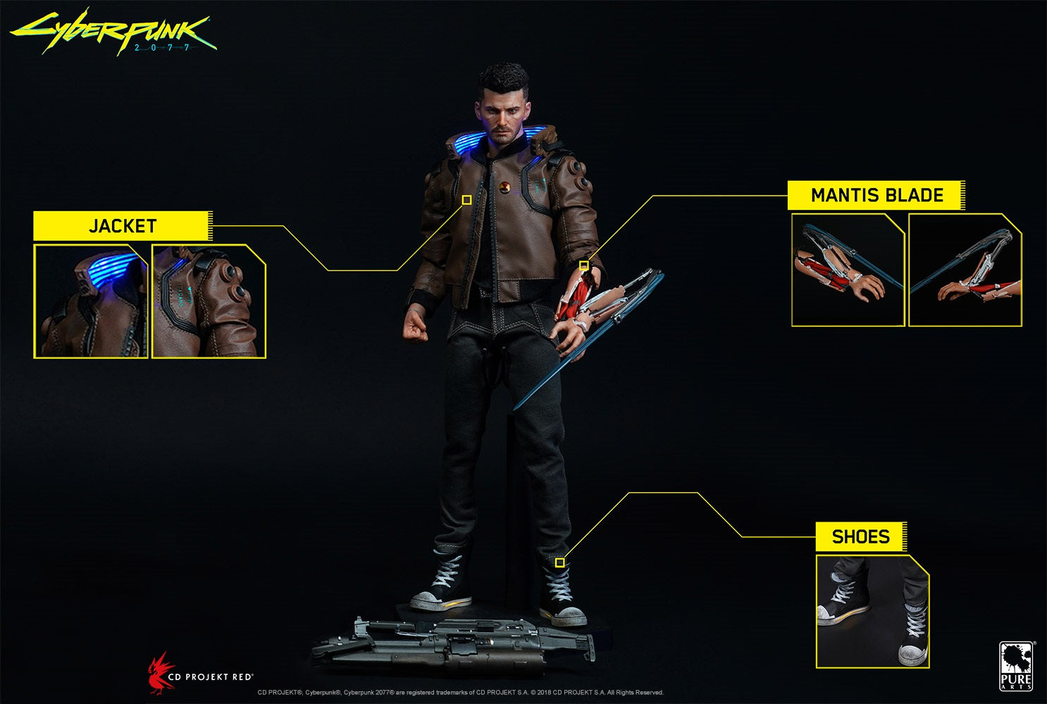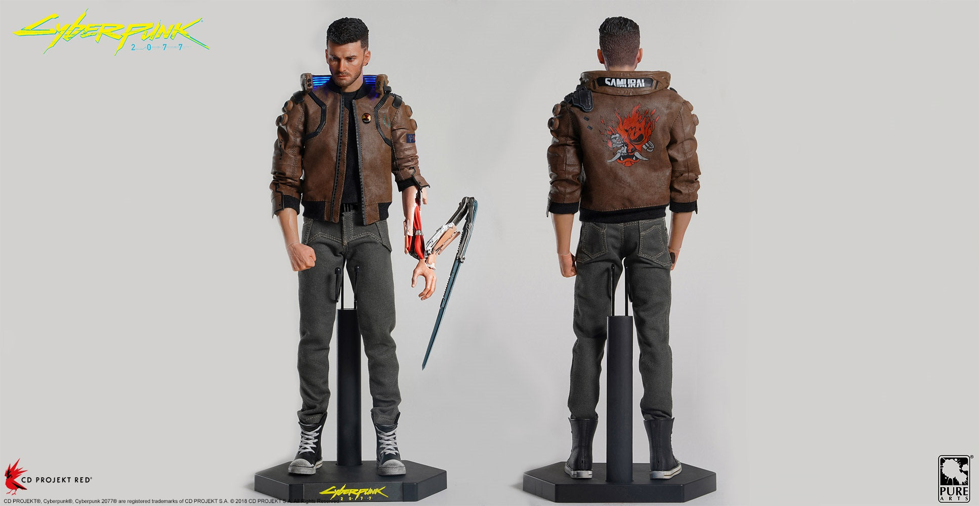 Del videojuego Cyberpunk 2077, PureArts y CD Projekt Red presentan a V, el personaje jugable principal, como una figura a escala 1/6. Con una altura de 12 pulgadas, la versión masculina de V ha sido esculpida hasta el más mínimo detalle y está pintada a mano. Toda la actitud de V ha sido fielmente capturada con esta figura altamente articulada e incluye luces LED en el cuello de la chaqueta.